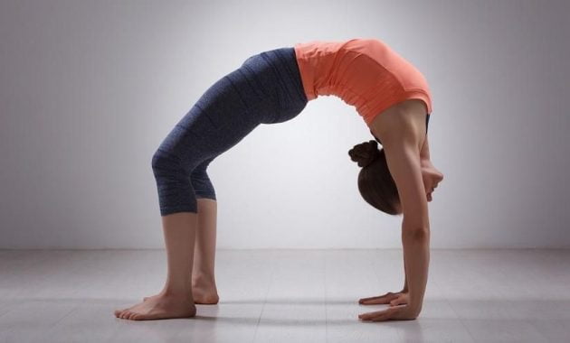 Lalu kalian berusaha melenturkan tubuh ke belakang dengan posisi badan yang tetap sama. Setelah itu, tumpu dengan kedua telapak tangan agar keseimbangan tetap konsisten.